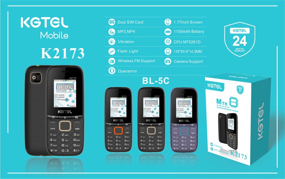 The Kgtel K2173 is a durable and budget-friendly feature phone made for everyday calling and messaging. With its bright 1.8” display, dual SIM capability, and 1000mAh battery, it’s perfect for users who want simplicity, long-lasting performance, and essential features like FM radio and torchlight.